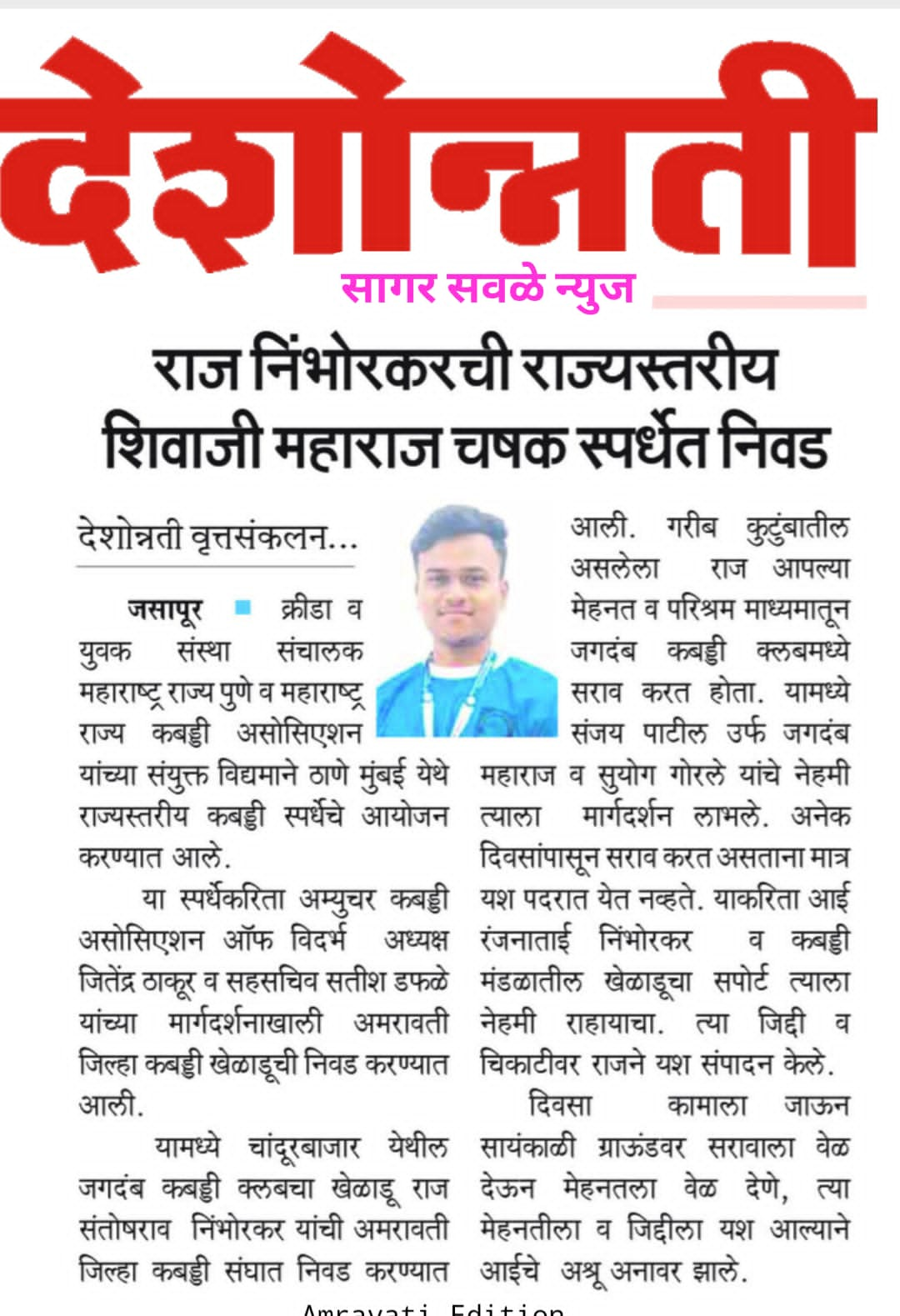 👉विदर्भ ज्युनियर राज्य मुले कबड्डी प्रशिक्षक श्री सतीश डफळे यांची नियुक्त करण्यात आली व विदर्भ राज्य मुली कबड्डी प्रशिक्षक श्री सुयोग गोरले यांची उत्तराखंड करिता ज्युनियर कबड्डी नॅशनल करिता मुले व मुली संघाचे प्रशिक्षक म्हणून निवड श्री जितुभाऊ ठाकूर यांनी केली